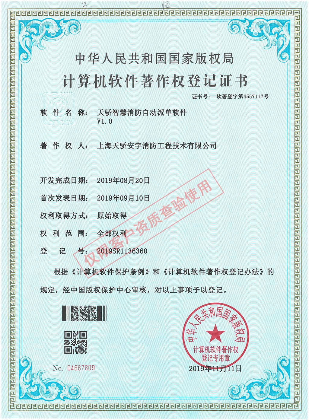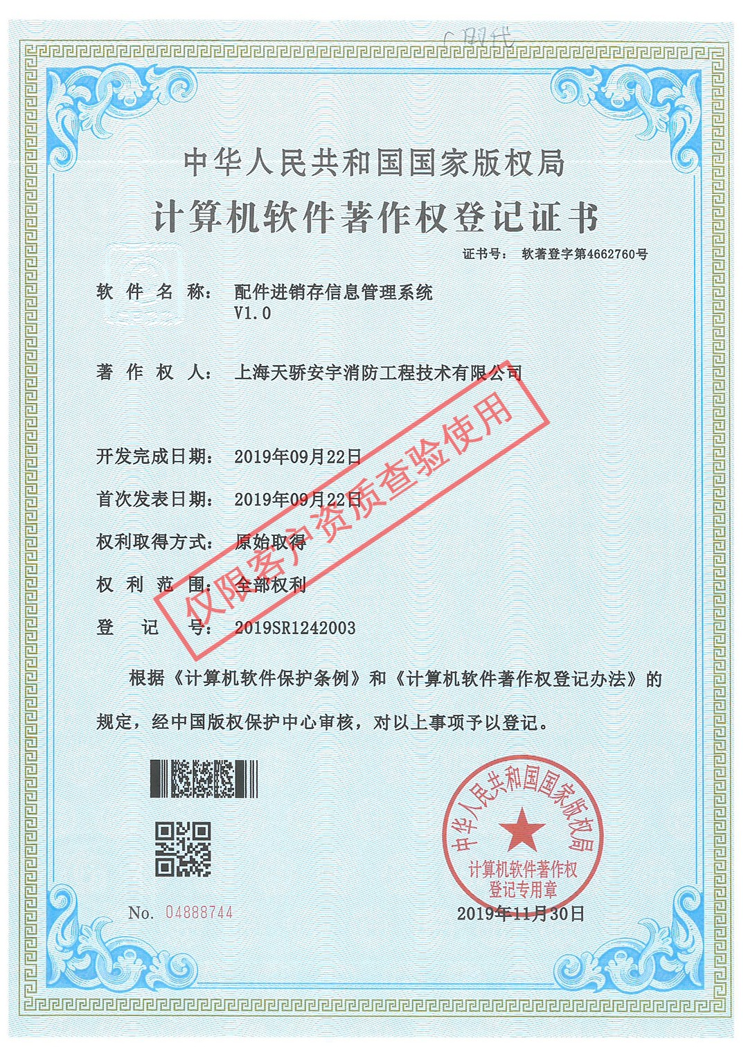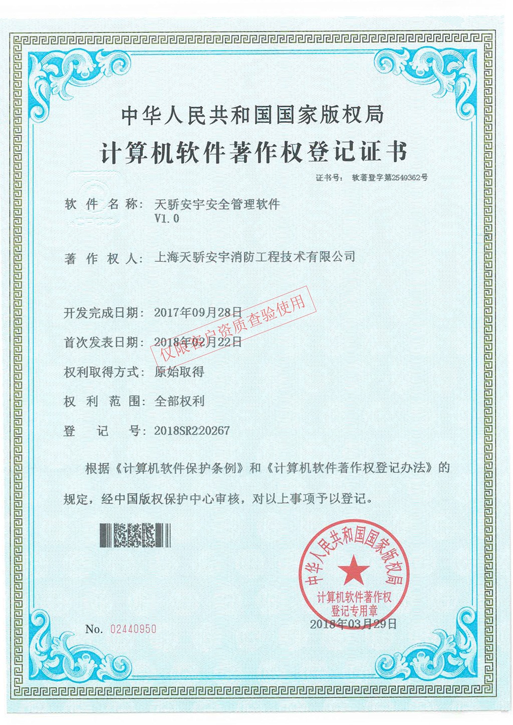 軟件著作權證書